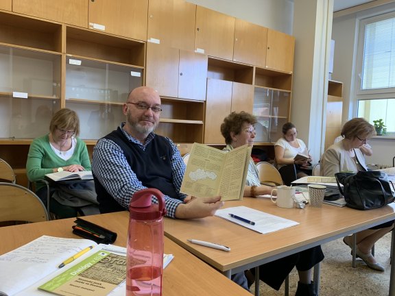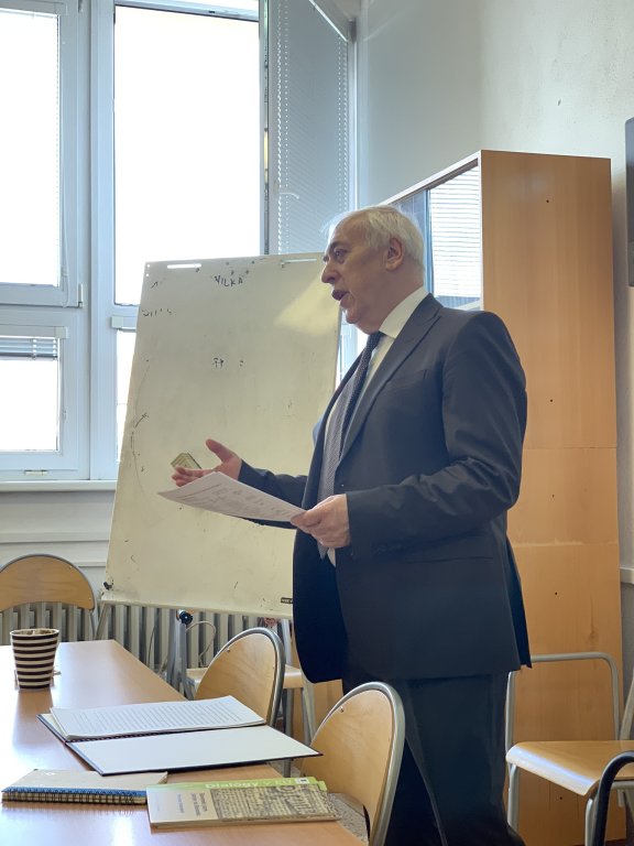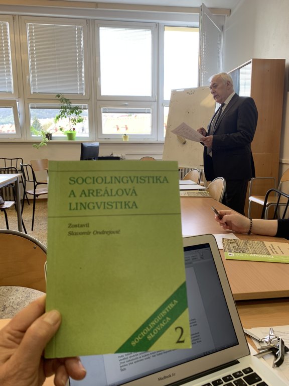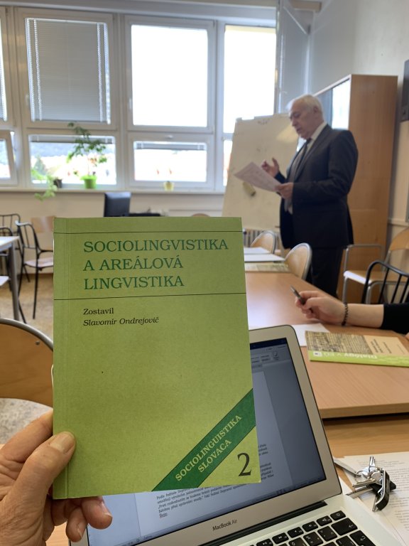 Vzácnou návštěvu ze Slovenska přivítala naše katedra bohemistiky ve středu 17. dubna 2019. O slovenském jazyce přijel přednášet významný česko-slovenský sociolingvista, překladatel a historiograf jazykovědy prof. Slavomír Ondrejovič. Přítomné obohatil nejen svými znalostmi a bohatými zkušenostmi ze země našich sousedů i z nejrůznějších států světa, ale rovněž publikací Slovenský jazyk a jazyky na Slovensku, jejíž četné výtisky přítomným v místnosti S1věnoval. „Kromě toho všeho, co jste o mně řekl , jsem byl také kapitánem fotbalového mužstva,“ řekl s úsměvem prof. Ondrejovič směrem k doc. Patriku Mitterovi, který se ujal úvodního slova a představení milého hosta.
