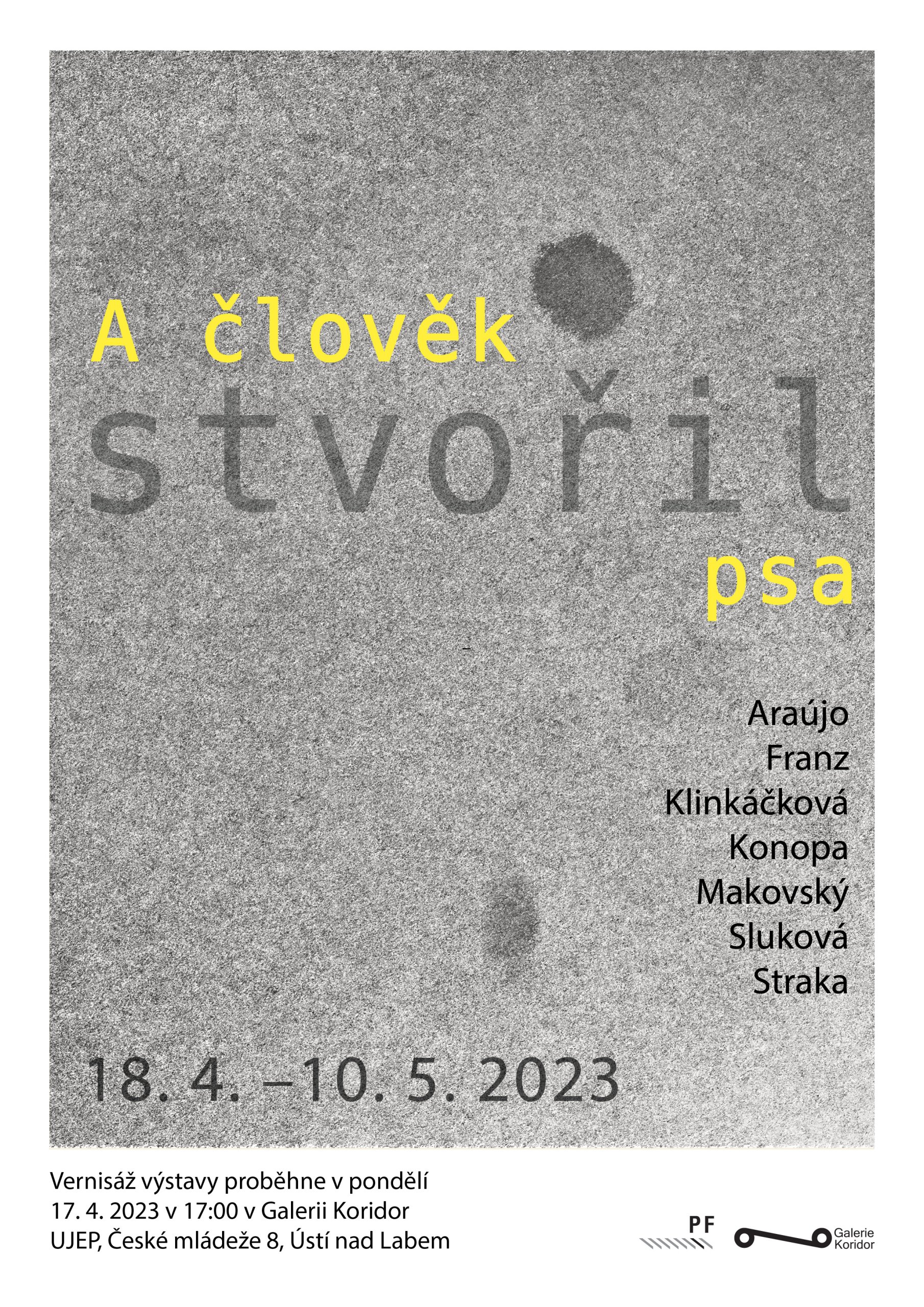Galerie Koridor Vás srdečně zve na vernisáž výstavy A člověk stvořil psa. Na výstavě bude představena tvorba autorek a autorů: Fábio Araújo, Vladimír Franz, Enge Klinkáčková, František Konopa, Miloš Makovský, Tereza Sluková, Radim Straka.