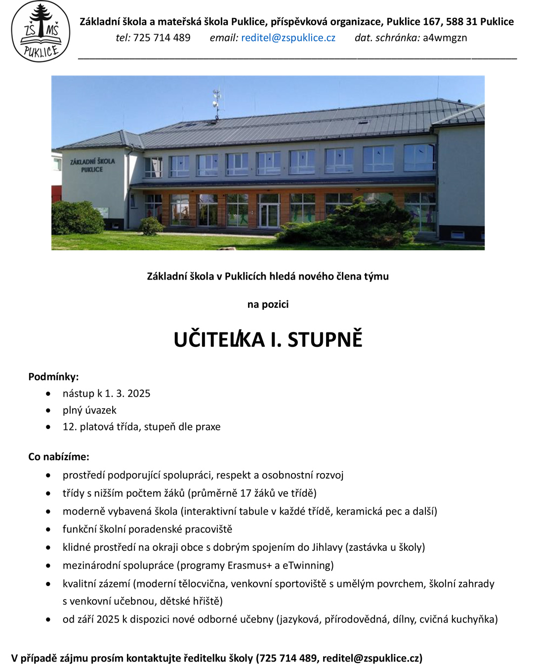 UČITEL/KA 1. STUPNĚ – Puklice